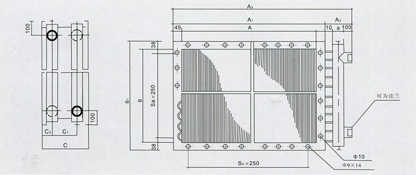 (4)盤管的空氣經(jīng)濟(jì)重量流速范圍為2-8kg/s。換熱器前后均應(yīng)安裝擋水板及積水盤。以便及時(shí)排除冷凝水。